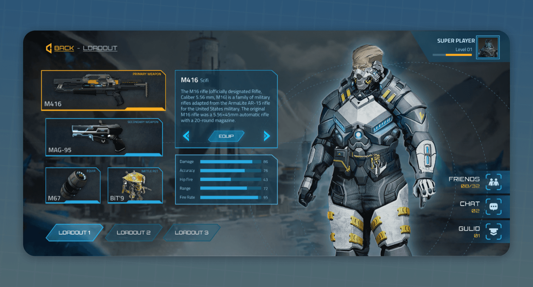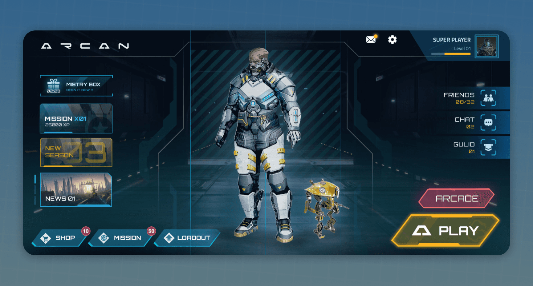 Arcan - Sci-Fi FPS Game UI/UX Design